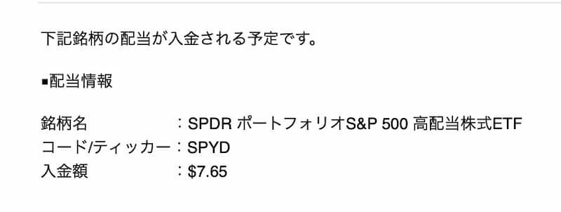 今回入金されたのはSPYDの配当金です。