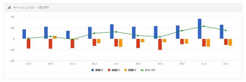 営業キャッシュもフリーキャッシュもなかなか安定しているのではないだろうか。